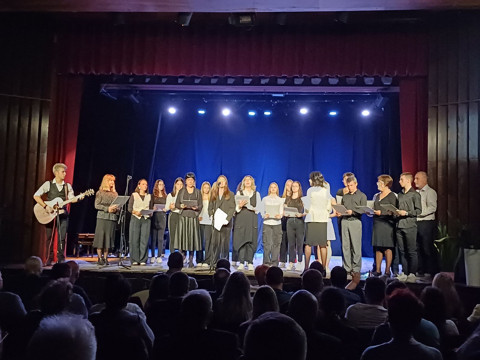 Hor učenika i nastavnika Ekonomske škole izveo je kompozicije “Zemljo moja” (Nevena Dobrički – solo), “Bella ciao” i “Računajte na nas”. Dirigent i muzički kapetan ove male horske lađe bila je Olivera Romić.