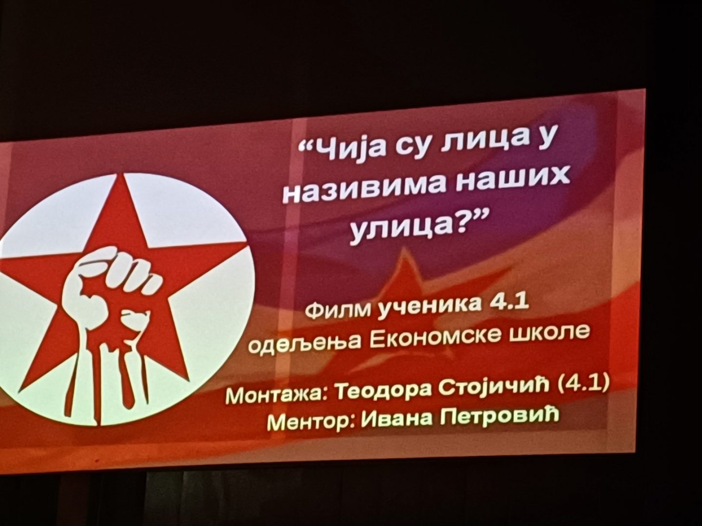 Tako su učenici odeljenja 4.1 kreirali film: “Čija su lica u nazivima naših ulica?” a pod mentorstvom profesorke Ivane Petrović. Fantastičnu montažu filma uradila je Teodora Stojičić, takođe učenica pomenutog odeljenja.